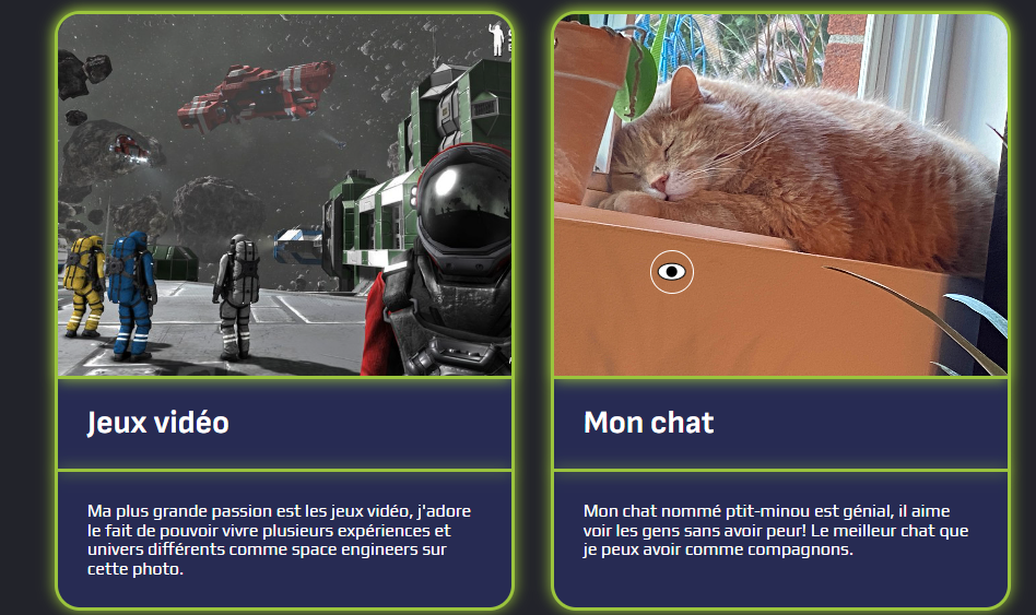 J’ai entièrement conçu le design moi-même en m’inspirant du style Bentho Grid et du thème Neon Nostalgia, afin de créer un site web immersif. J’ai également bénéficié des conseils de mon professeur concernant le choix des couleurs.